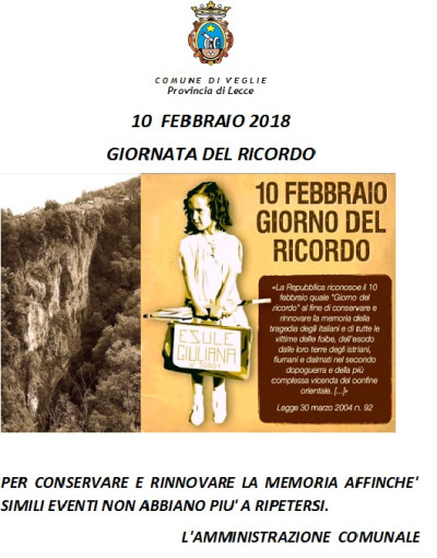 10 FEBBRAIO 2018 - GIORNATA DEL RICORDO